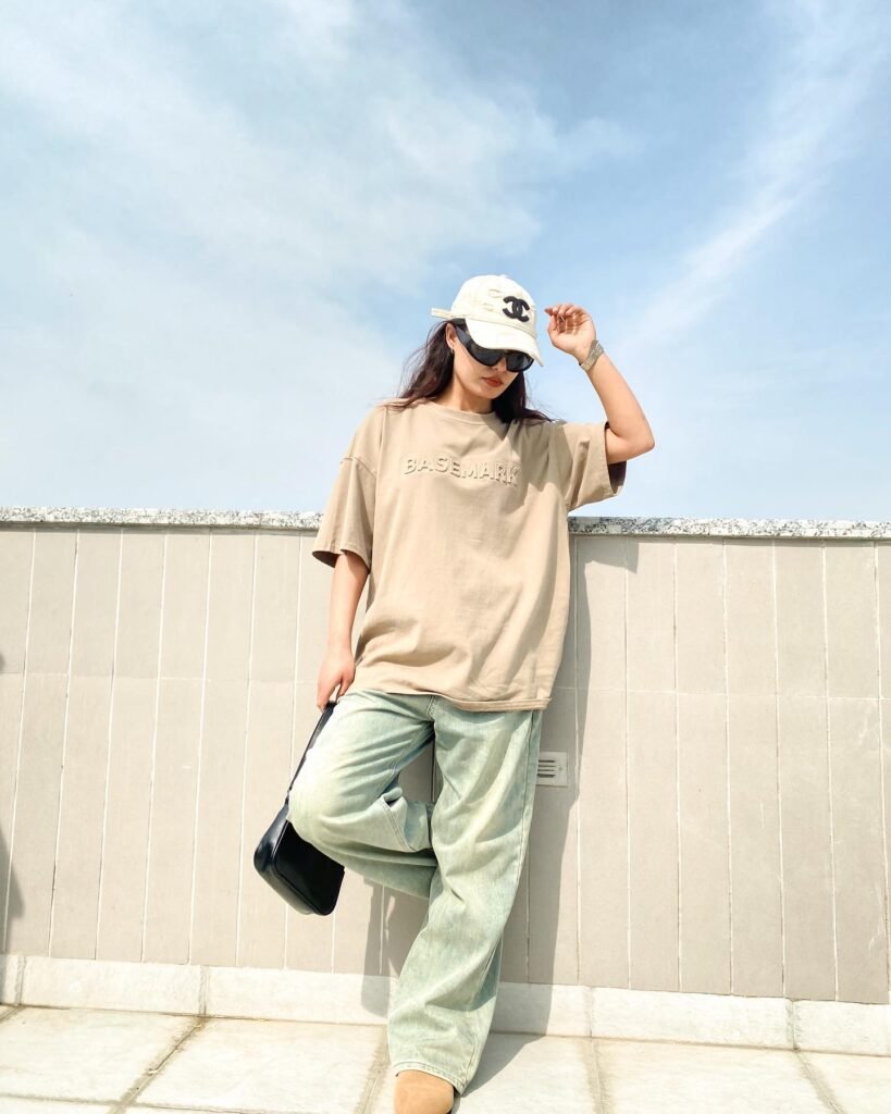 This outfit screams NYC cool girl energy. I pair a vintage graphic tee with a denim or cotton mini skirt, and the result feels effortlessly stylish.