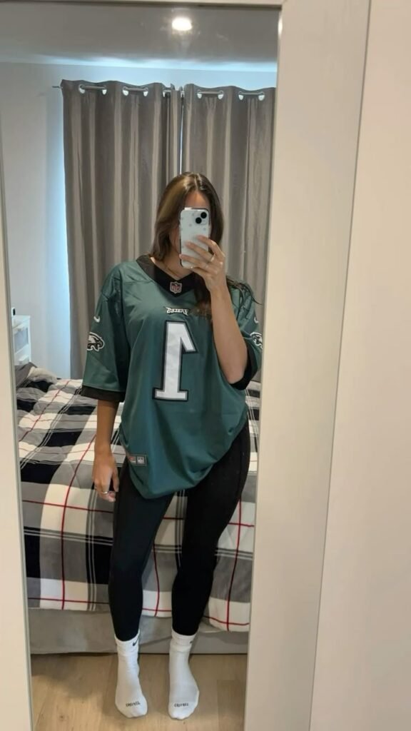 I swear every time game day rolls around, someone messages me something like, “Freya, what do I wear with a jersey that’s neon green and navy???” And honestly, I get it. Jerseys look amazing on players sprinting down a field, but styling them IRL? That’s a whole different sport, and most of us didn’t sign up to compete 😂.