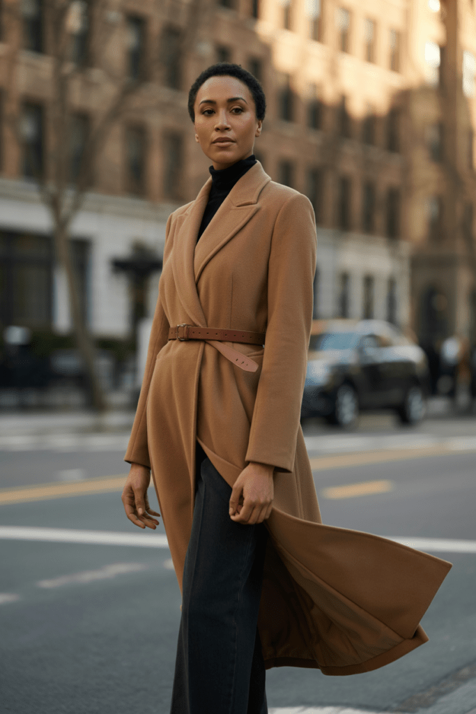 Use the coat’s built-in belt or add your own statement belt. This small styling trick makes such a huge difference in how polished your outfit looks.