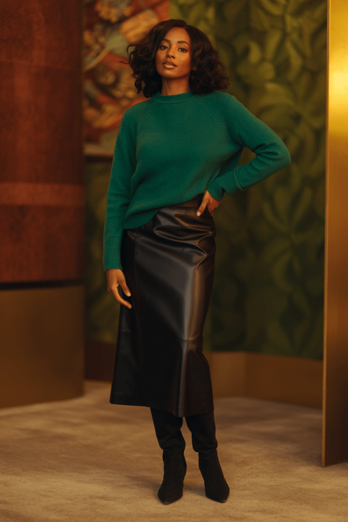 A cozy sweater tucked into a midi skirt with tall boots is my go-to formula when I want to feel feminine but warm. The key is making sure the skirt hits at the right spot—usually mid-calf—and the boots come up to meet it.
