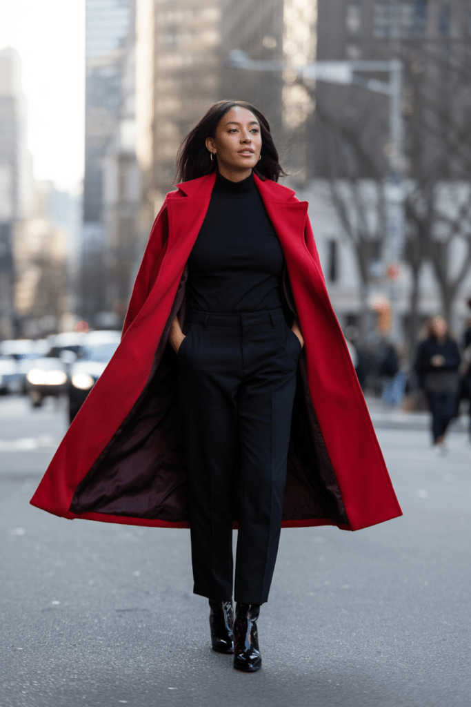 My current obsession is a bright red wool coat that I wear over all-black outfits. It’s bold, it’s confident, and it makes me smile every time I put it on. FYI, colored coats photograph incredibly well, so keep that in mind for your winter content 🙂