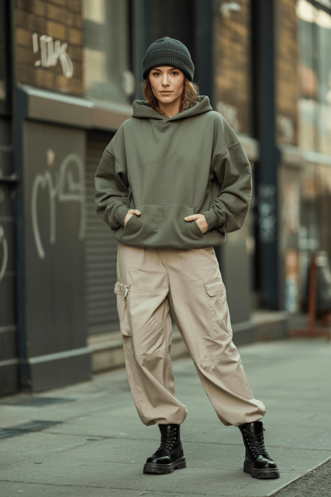 The utility vibe of cargo pants mixed with the streetwear energy of an oversized hoodie creates this effortlessly cool aesthetic. I’m talking about: