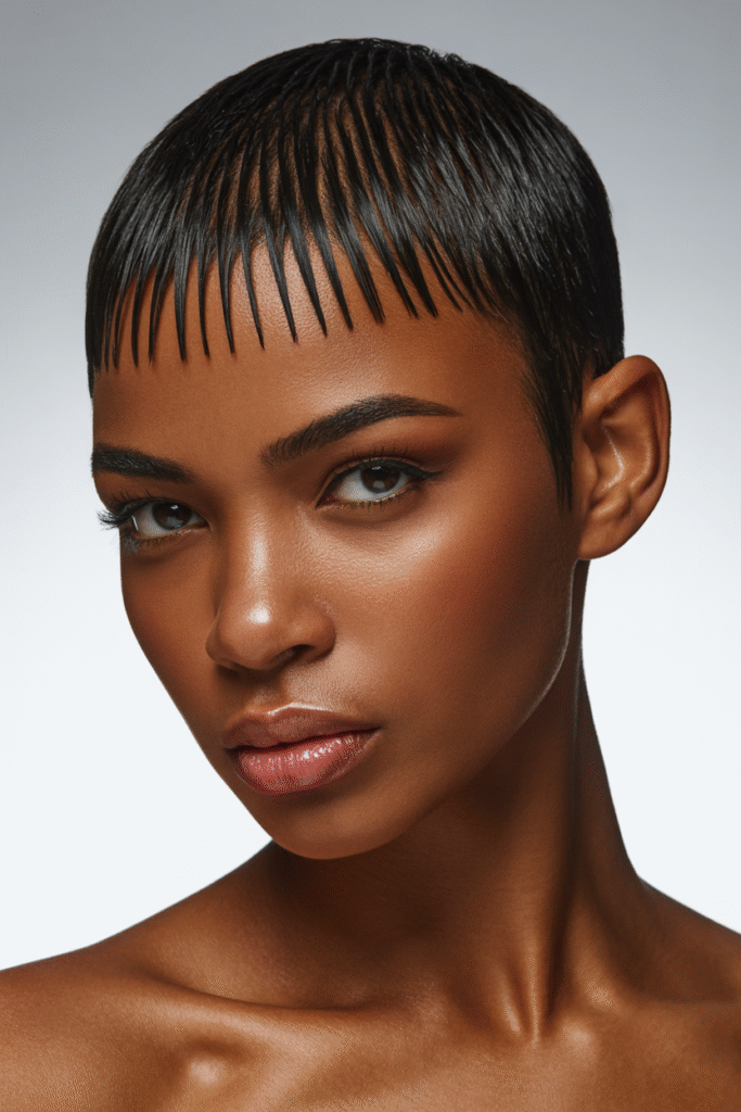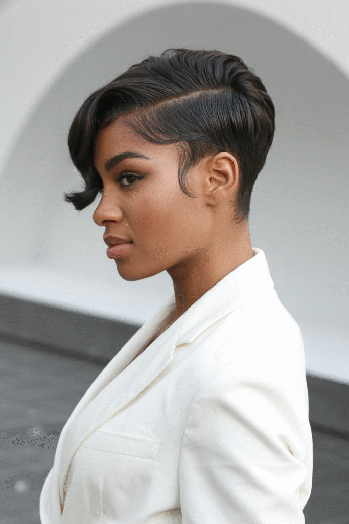 Why it works: The pixie cut is iconic for a reason, and on Black women, it’s absolutely stunning. This style hugs your face shape beautifully and draws attention to your cheekbones and eyes.
