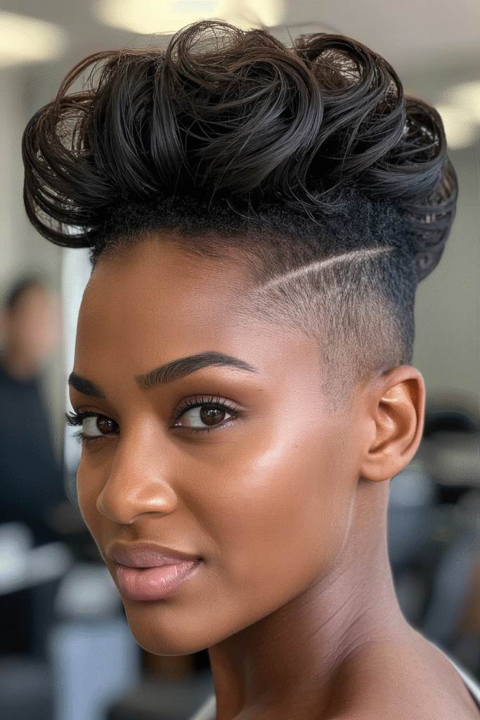 Why it works: For when you want volume and attitude. The high-top fade is bold, fun, and has serious ’90s nostalgia energy.