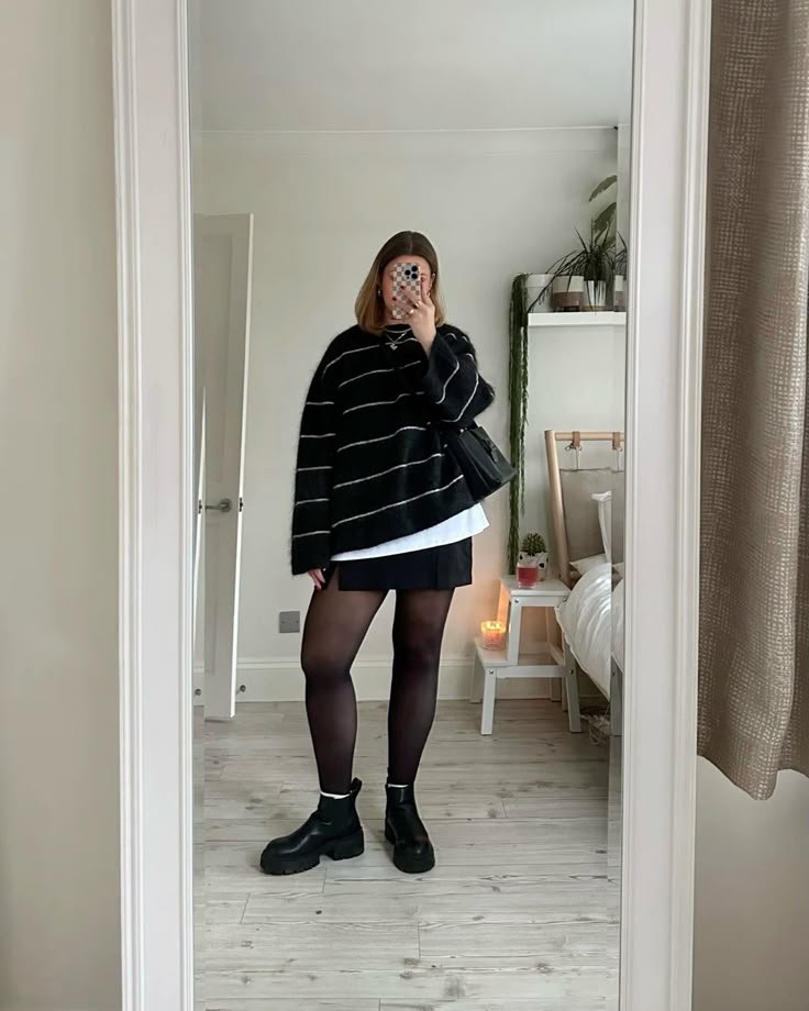 1. The Black Mini + Oversized Sweater Combo