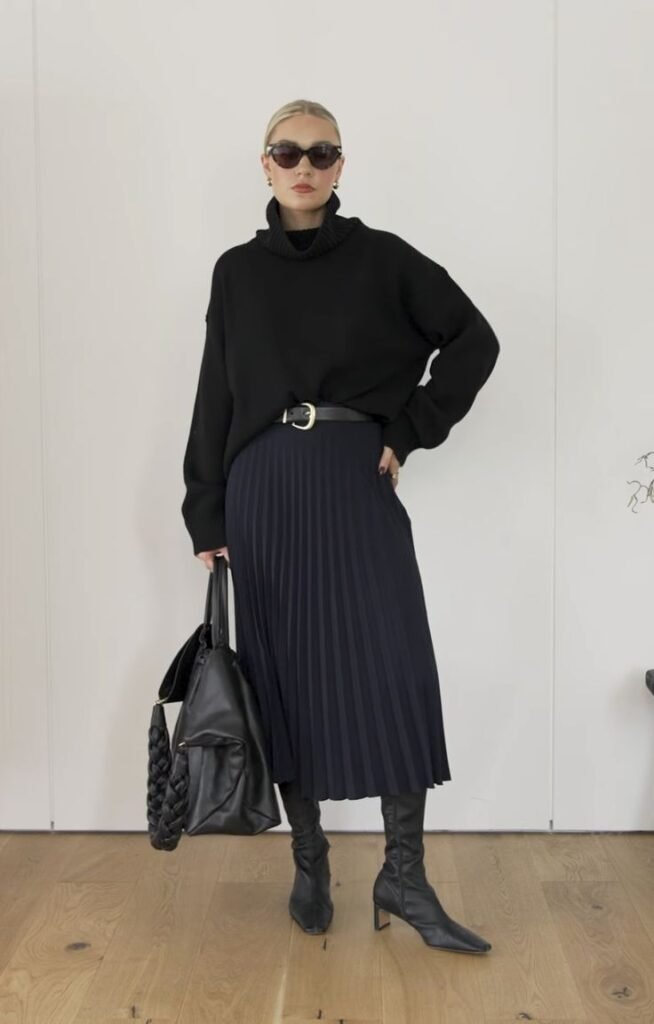 8. The Black A-Line Skirt + Turtleneck (The Clean-Girl Look That Always Works)