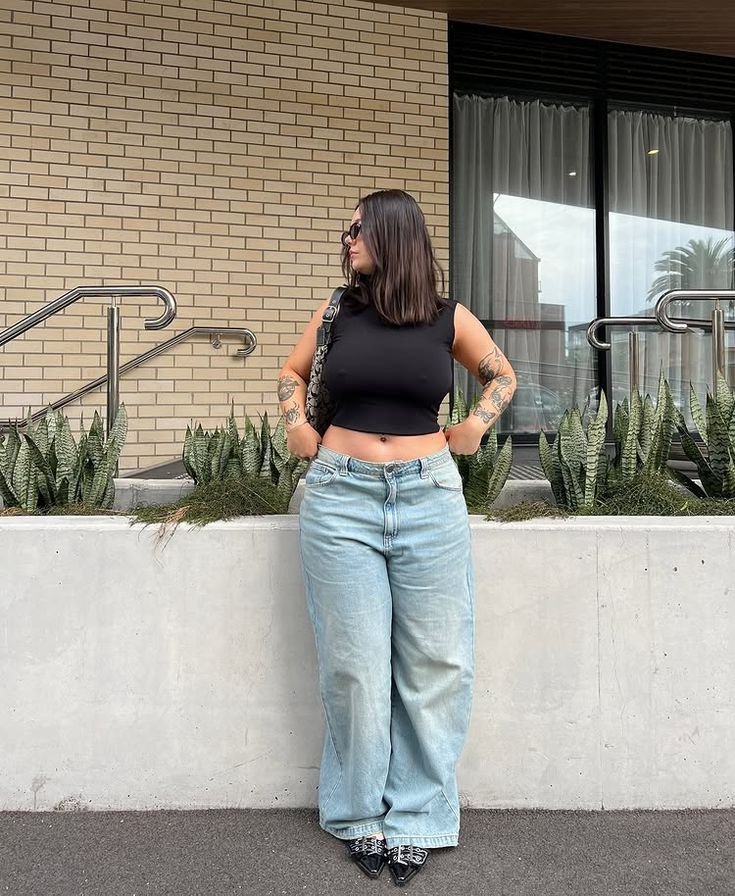 Baggy jeans don’t belong to one body type. Styling does the work, not the body.