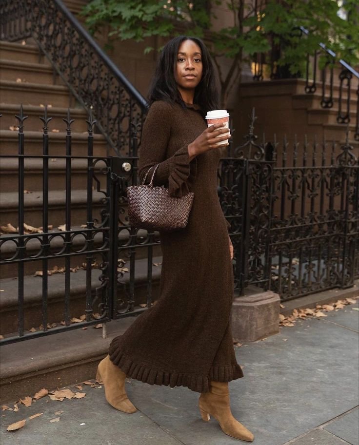 Let’s talk about the MVPs: knit dresses. They hug your body, hold warmth, and make you look expensive, even if you got yours for $29.99 at Zara.