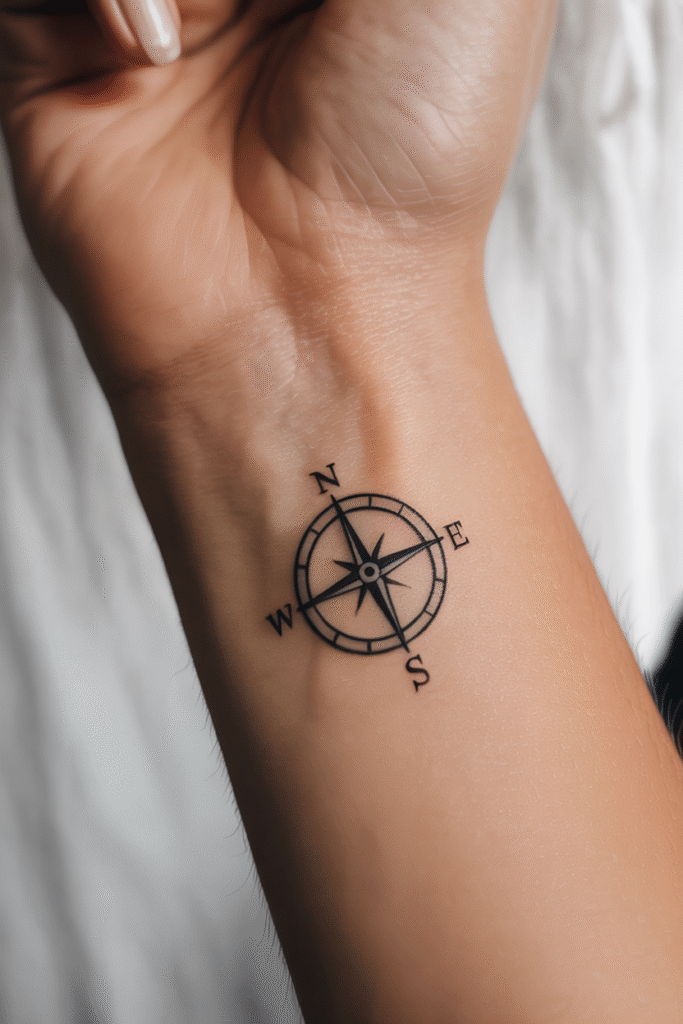 The design is naturally circular, which makes it super easy to place almost anywhere. I love how compasses look on the wrist or forearm—there’s something about the symbolism of always knowing where you’re headed that resonates.