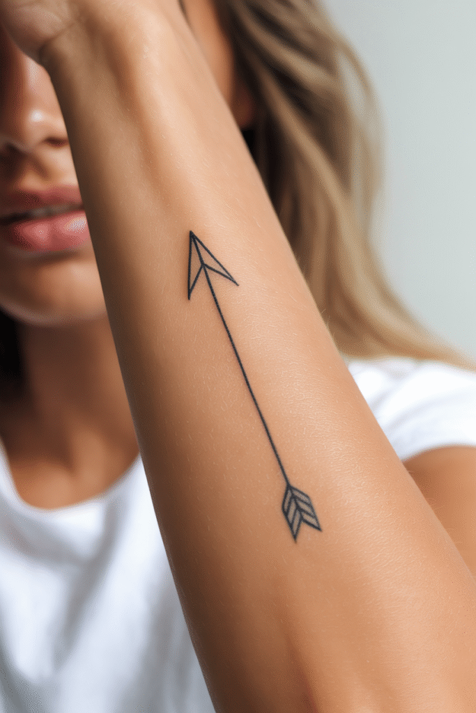 An arrow tattoo screams “I know where I’m going” energy. It’s directional, purposeful, and looks surprisingly chic for such a simple shape. Plus, arrows have been symbolic across cultures for centuries—moving forward, protection, focus.