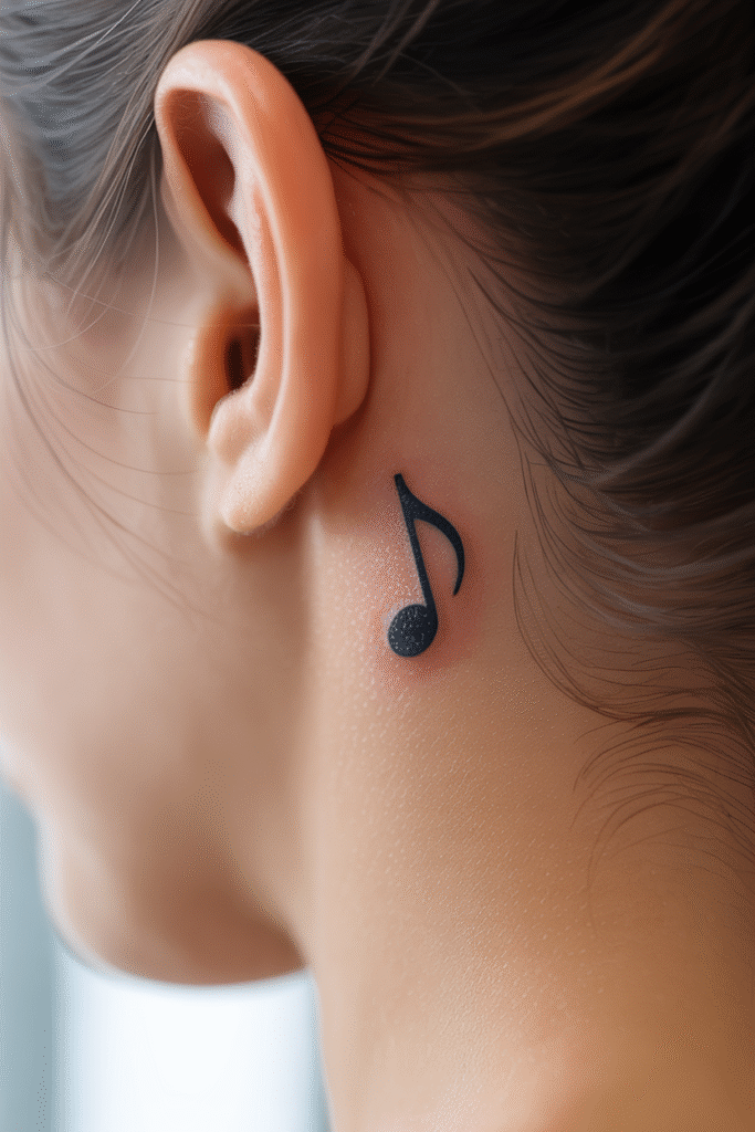 Music lovers, this one’s for you. A tiny musical note is a subtle way to express your passion without going overboard. Whether you’re a musician, a music enthusiast, or just someone who can’t function without their Spotify playlist (same), this design speaks volumes.