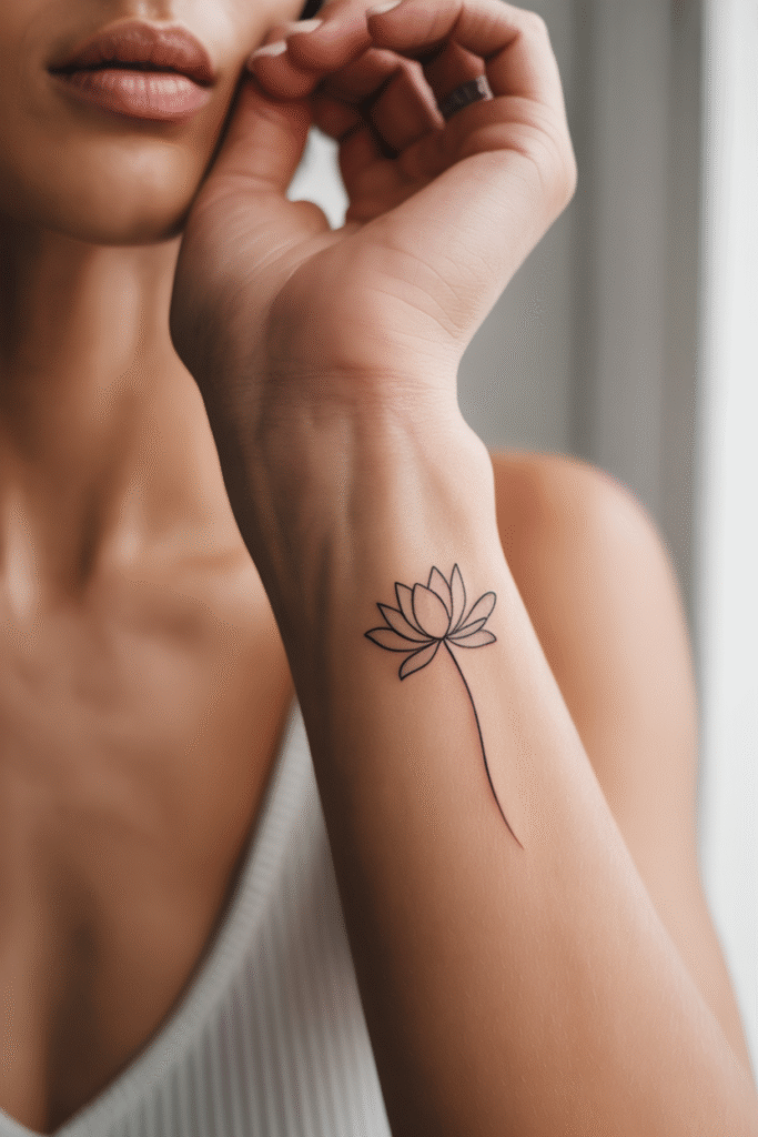 My top picks? Lotus for resilience, lavender for calm, or a simple wildflower for the free spirits. The single-line technique keeps it sophisticated and prevents it from looking too busy or dated.