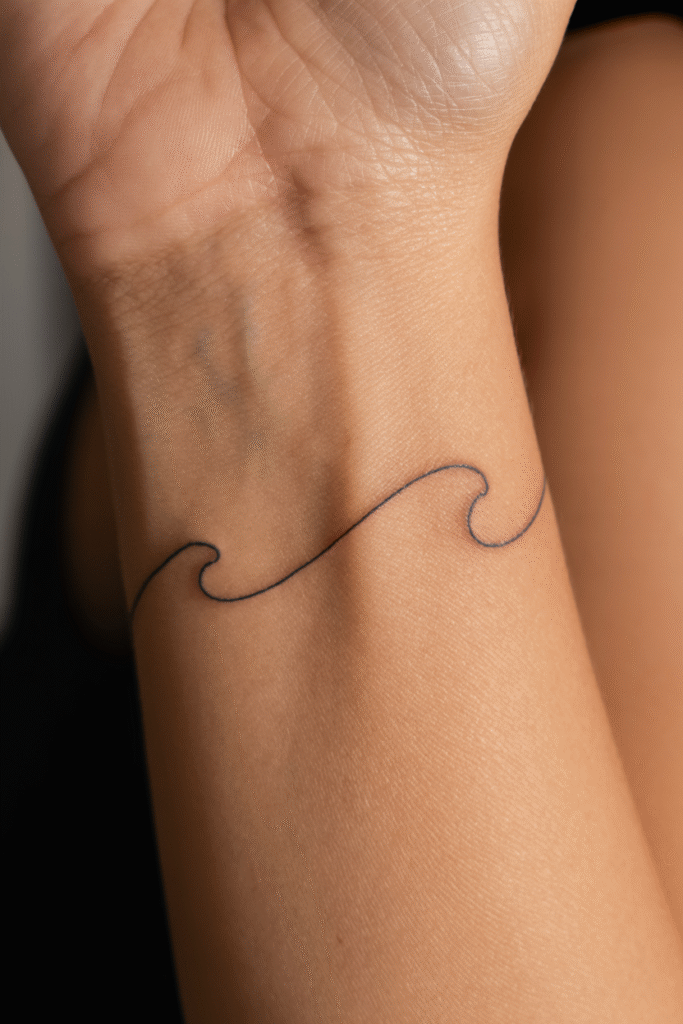Okay, starting strong here. Line art tattoos are everywhere right now, and the wave design is my personal favorite. It’s simple, flows beautifully with your body’s natural curves, and works literally anywhere—wrist, ankle, behind the ear, you name it.